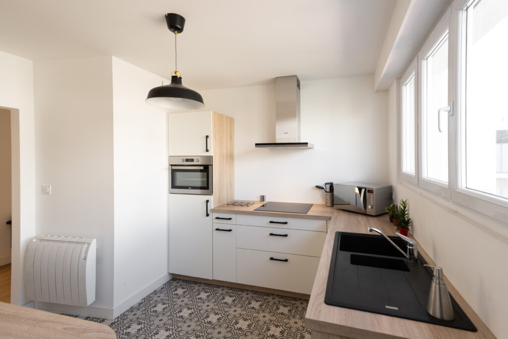 - Cuisine équipée aménagée : 2 frigos, fours, micro-ondes, machine à café, bouilloire, plaque de cuisson électrique (4feux), vaisselle