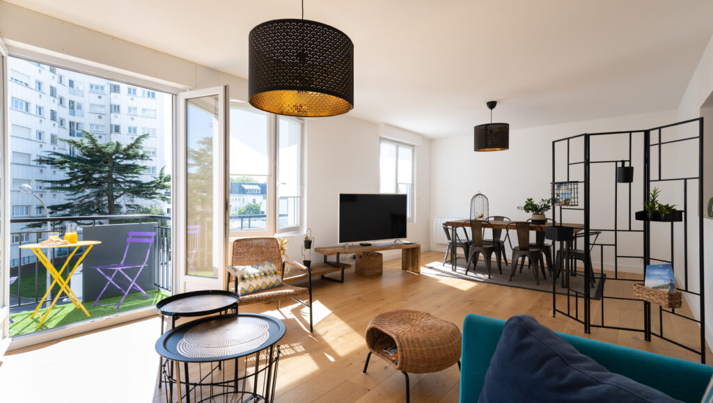 - Salon : TV connectée, WIFI inclu, canapé, Table à manger pour 8 personnes