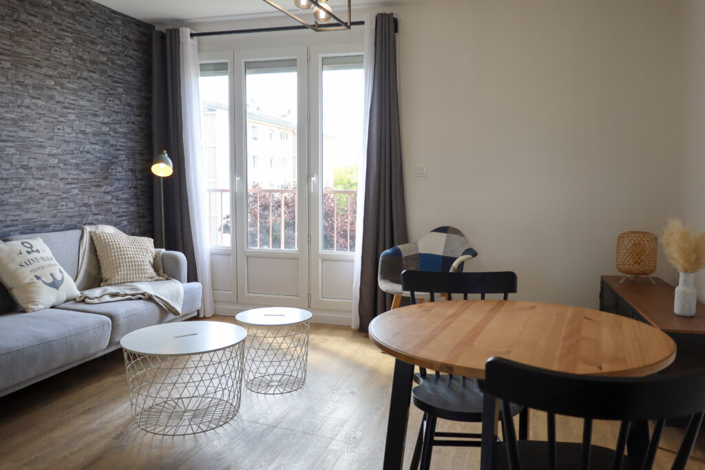 - Salon : TV connectée, WIFI inclu, canapé, table à manger pour 2 personnes,
