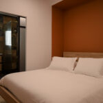 - Une chambre avec lit King Size (180x200cm), placard avec penderie, télévision HD et salle d’eau privative avec sèche-serviettes, douche à l’italienne et miroir.