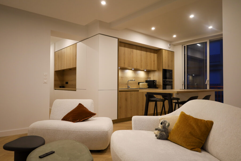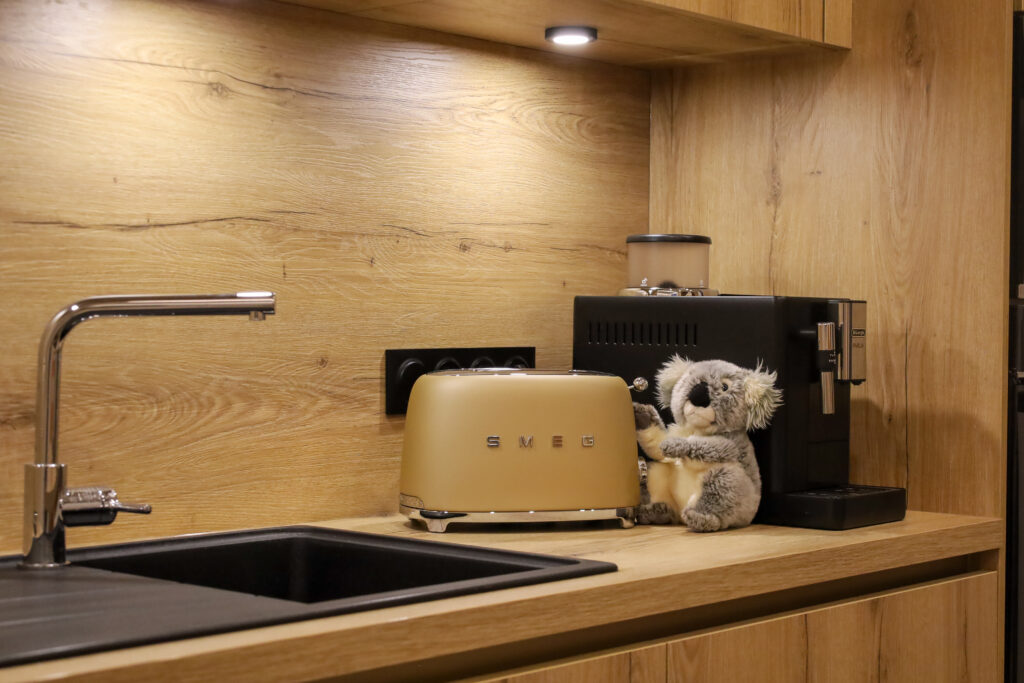 - Cuisine équipée et fonctionnelle : machine De’Longhi à café grain, bouilloire et grille pain SMEG, four, micro-ondes, lave-vaisselle, frigo et congélateur.
